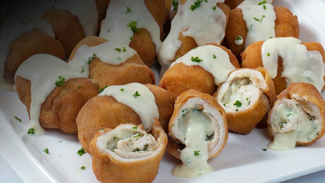 We offer a different version of Chicken à la Kiev, a dish that includes juicy chicken breasts stuffed with seasoned butter, coated with flour, eggs, and breadcrumbs, and then fried.